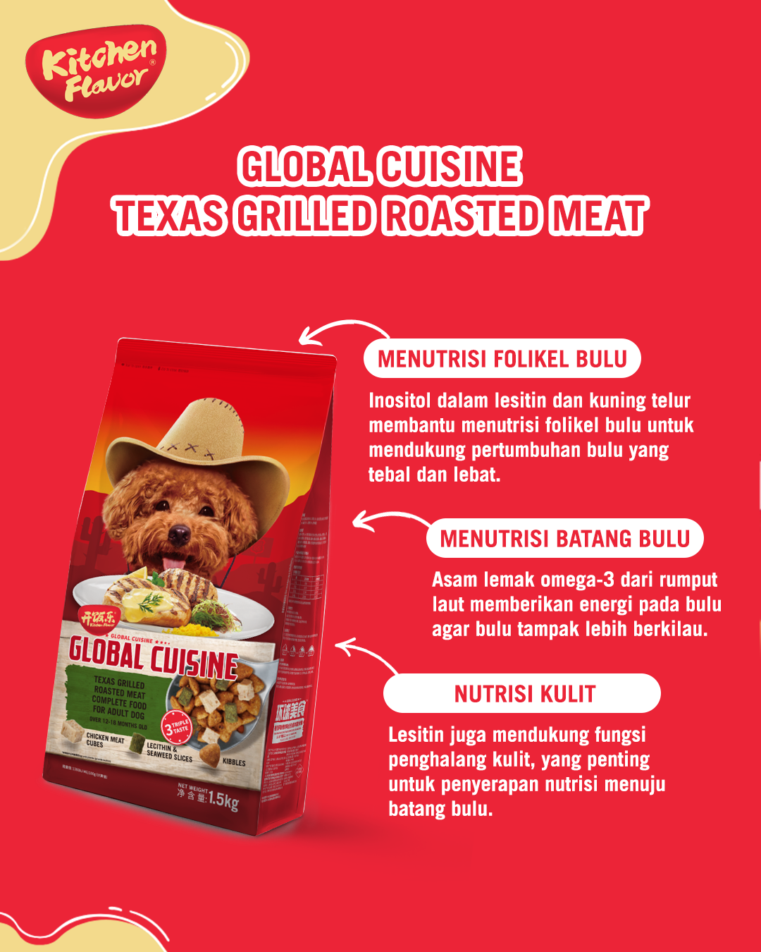 Untuk kucing, coba Kitchen Flavor Grain Free for Adult Cat, diperkaya dengan akar alfalfa yang membantu mengontrol hairball dan mendukung kesehatan pencernaan. ? Tersedia di Kitchen Flavor Official Store dan petshop di seluruh Indonesia — pilihan sehat untuk perut bahagia dan bulu yang lebih sehat.
